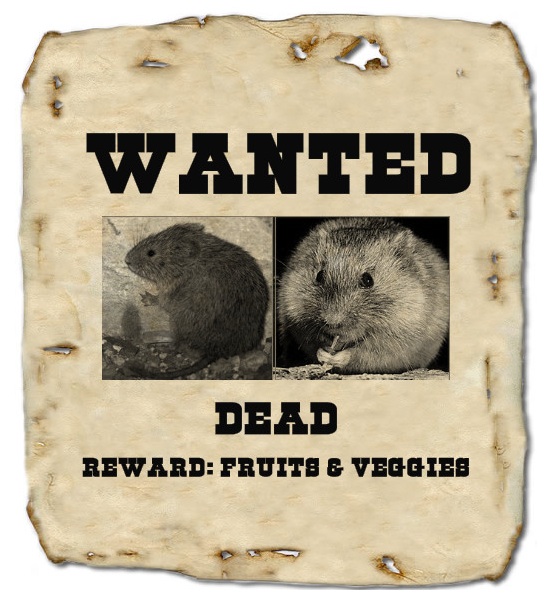 2.) Get out some .22LR (small firearm) and offer up a buck for every vole they bag.