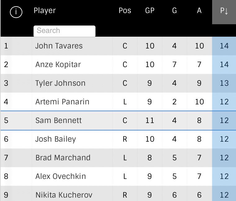 #NHL point leaders since November 28th. #Flames @SBennett93 tied for fourth on a list that includes some of the league’s best players.