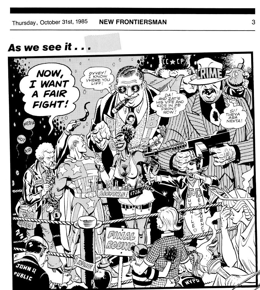 Reading up more on it, apparently there's an overtly racist cartoon shown as a sample of the "New Frontiersman's" work. I haven't seen it yet, but if true, that's a pretty solid link between Rorschach and racism.