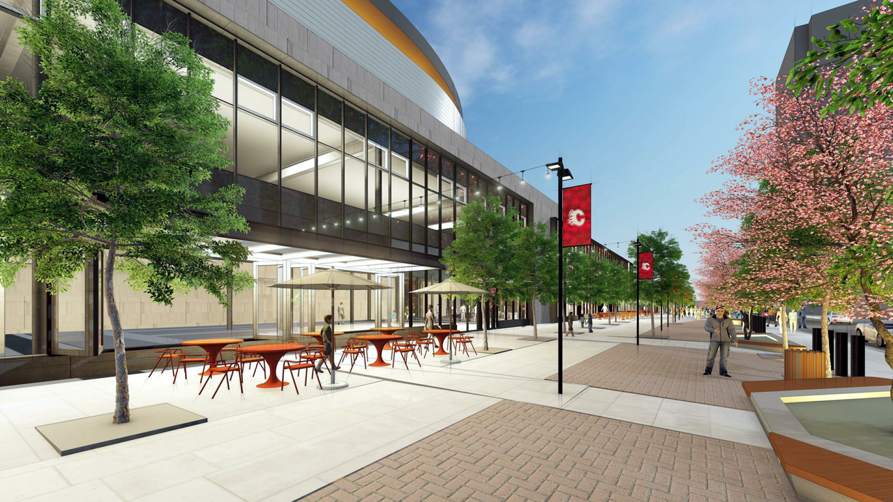 The street side retail/restaurants are labelled as Retail-Restaurant Sports Bar, Bourbon Bar, and Retail - Team Store/HOF. I assume HOF will be a Flames Hall of Fame of some sort (where you'll likely be able to buy alumni merch).