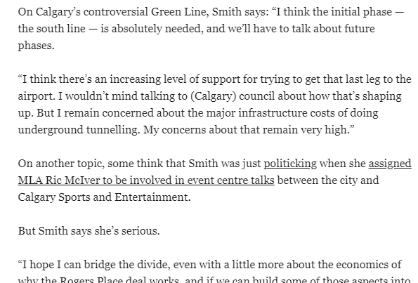 In 2020, the "North" part of the Green Line was just to 16th Avenue, an almost useless terminus for NC Calgary. The true NC LRT was cut in the 2017 revision of the Green Line when Notley was Premier. If she wanted a meaningful NC LRT she could have offered $1.5B back then and that should have gotten to at least 64th.
