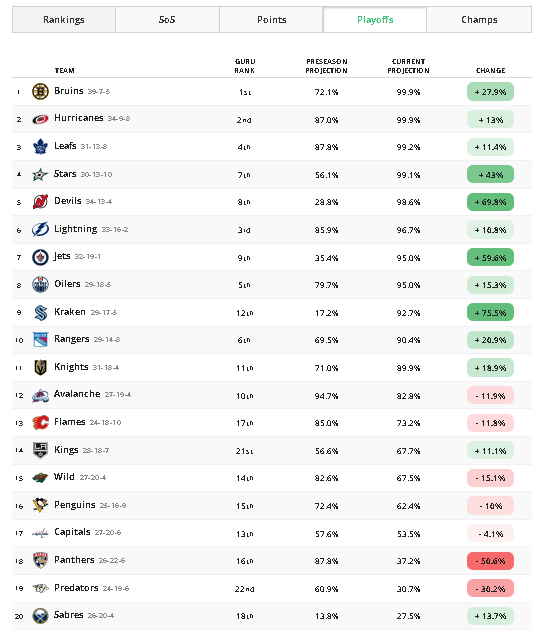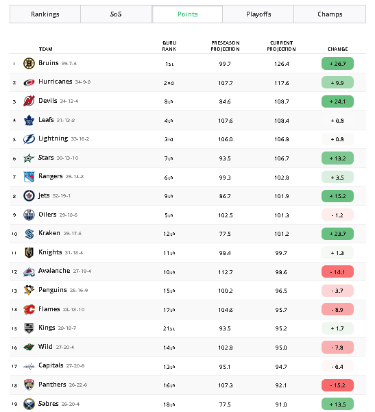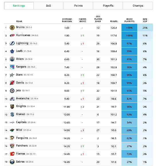 Buffalo is 4 points out with 3 games in hand.