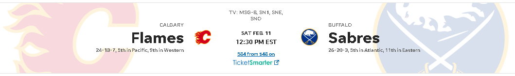 Calgary Flames at Buffalo Sabres 10:30am TV: SN1/E/O, MSG-B - RADIO SN960