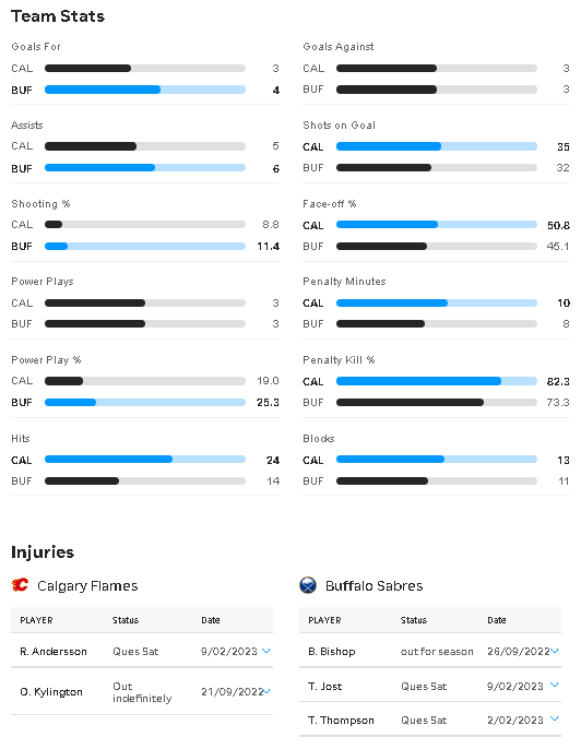 Size, speed and skill. Buffalo’s going to be a big challenge for the Flames. Calgary needs to limit their penalties and turnovers.