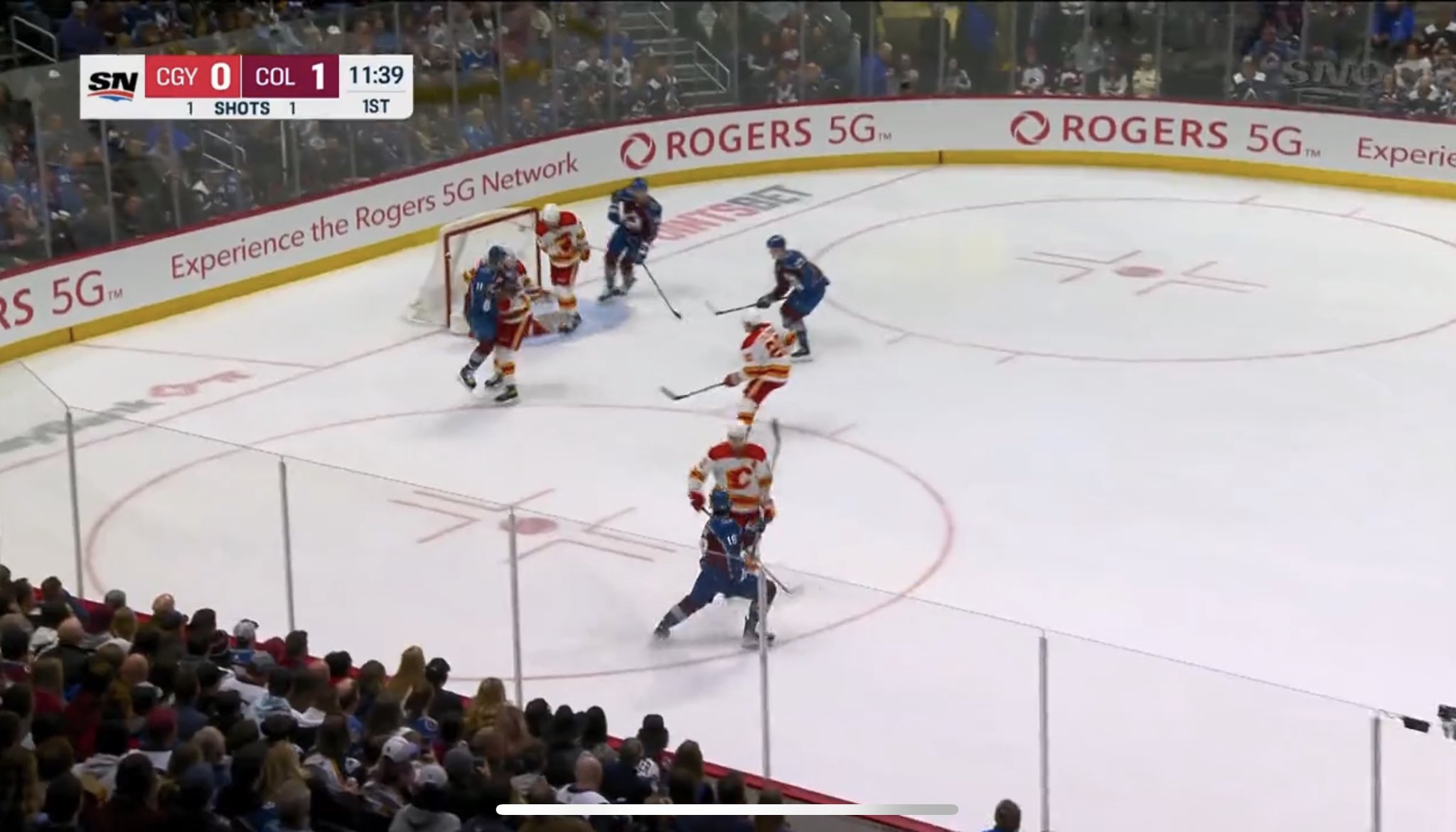 Yes, you are not a goalie coach. They simply don’t teach (a) standup and (b) playing way out (not that he can get there on that play). He just didn’t see the puck on that play. Because there were 3 Flames in front of him plus Avs. He had a way better chance on the first goal.