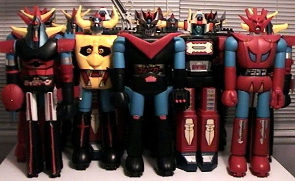 I had some giant shogun warriors. Anyone else remember or have these too? I had the middle 3 on the picture below. These things were huge! About 2 feet tall I think.