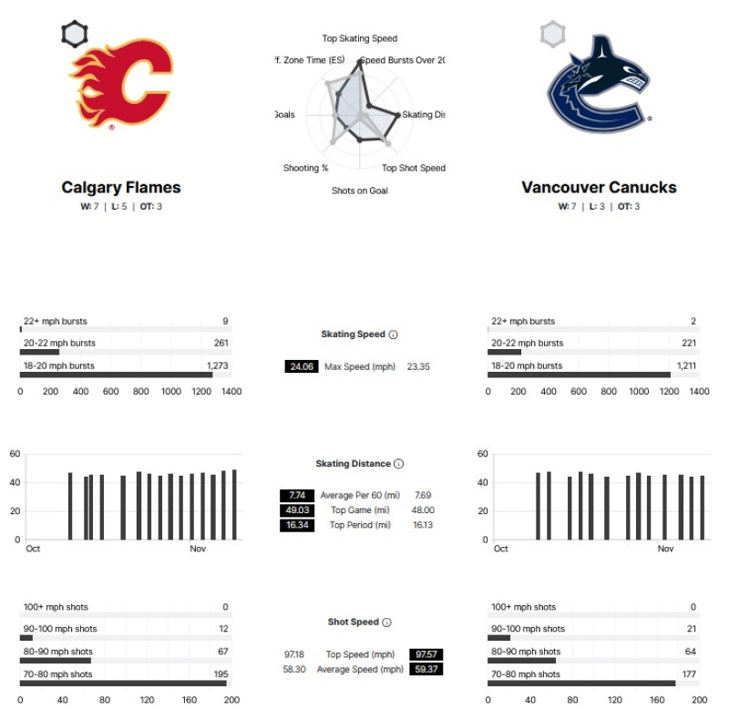 Tonight marks the second of four meetings between the Canucks and Flames this season: Oct. 9 (home, 6-5 OTL), Nov. 12 (home), Dec. 31 (road), and Mar. 12 (road).
