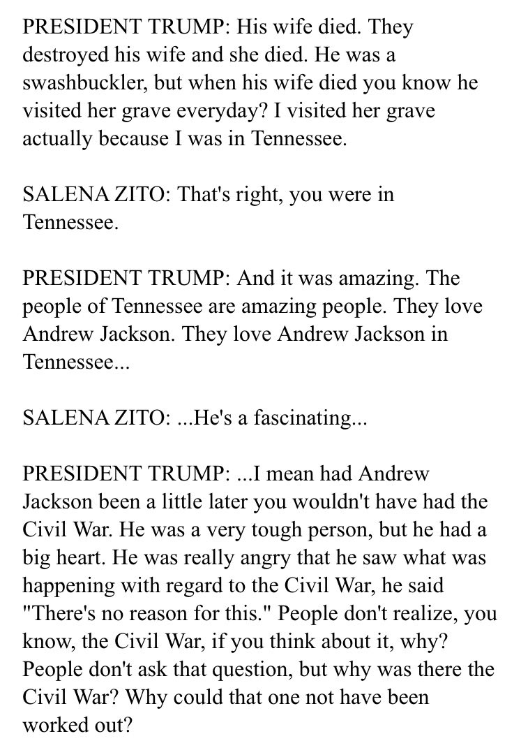 What I love is how undoubtedly proud he and his cult are of his staggering ignorance and lack of knowledge. Oh and he has talked many times of his love of Andrew Jackson, so to not know either a) when he died or b) when the civil war was ....yeah lol