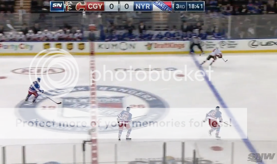 This one really mad me mad. Before the rangers score Colborne should have had a breakaway. Linesman calls offside when he was onside by a foot.