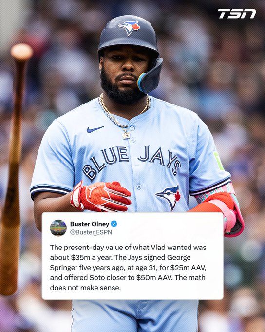 Can't really blame them for that. Sheeeeiiit, if he'd have taken the Jays rumored offer it would have been a record deal for a first baseman, so clearly the Jays aren't being stingy or unfair, it's just Vlad has an over inflated value of himself. Unless he puts up a season like Soto had last year he's going to find out the hard way when he hits the open market.