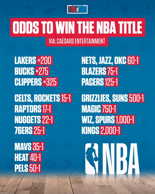 Looks like fair odds for the Raps. My personal view is because of the new environment where all the players will be around one another pretty much 24-7 in tight quarters, the strongest personalities will pull away. I think it's intimidating being around the best of the best all the time and hearing the trash talk. It's a psychological game, where I think the loaded teams are going to have that psychological advantage that way, whereas under normal circumstances teams have their own teammates and a bubble to protect them. Being a short "season" would make for some interesting betting where you never know if a flyer becomes hot, now that the attrition factor is gone away.