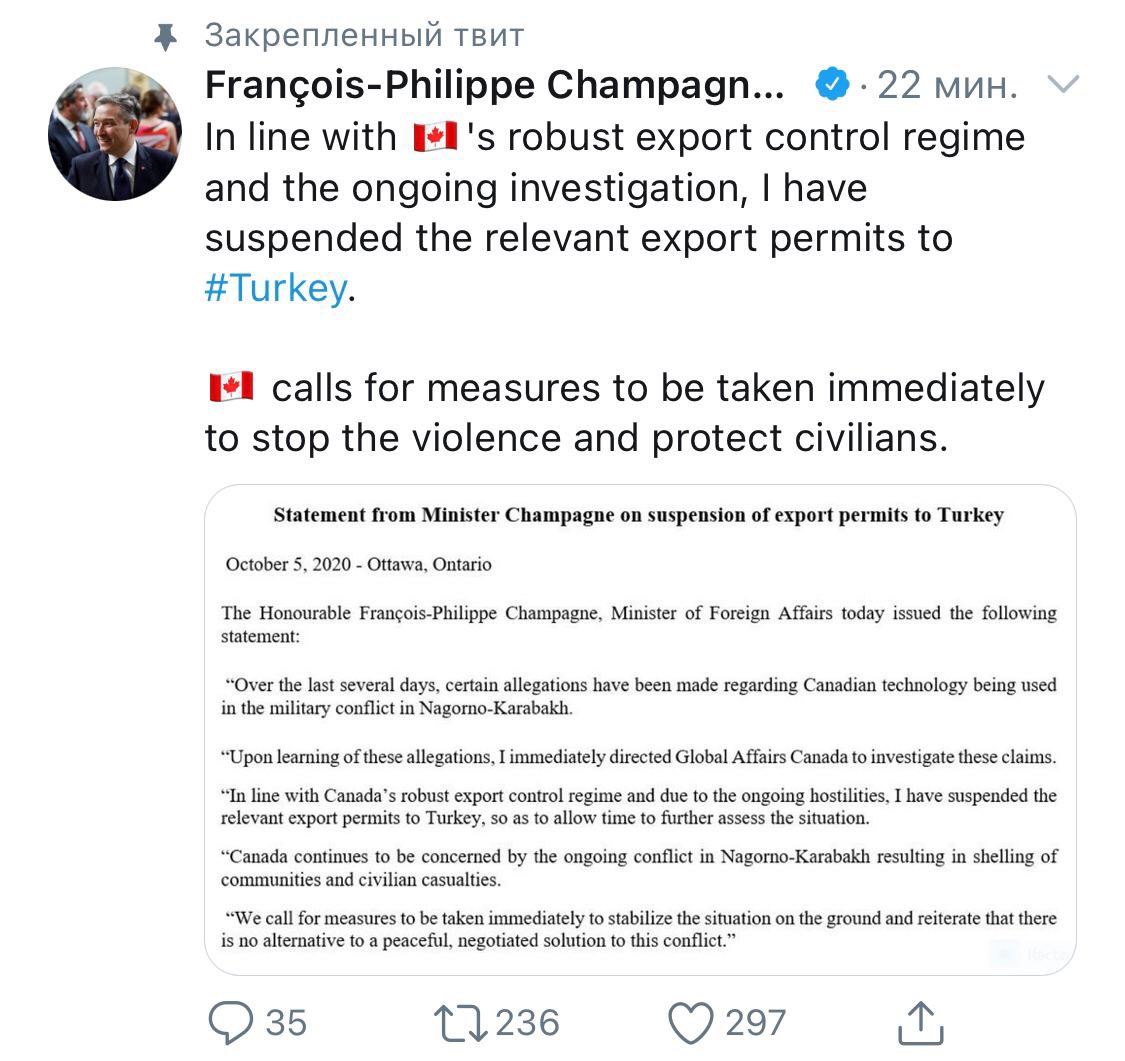 Today, the Canadian government announced that it is suspending export permits to Turkey because of concerns that the technology is used against civilians.