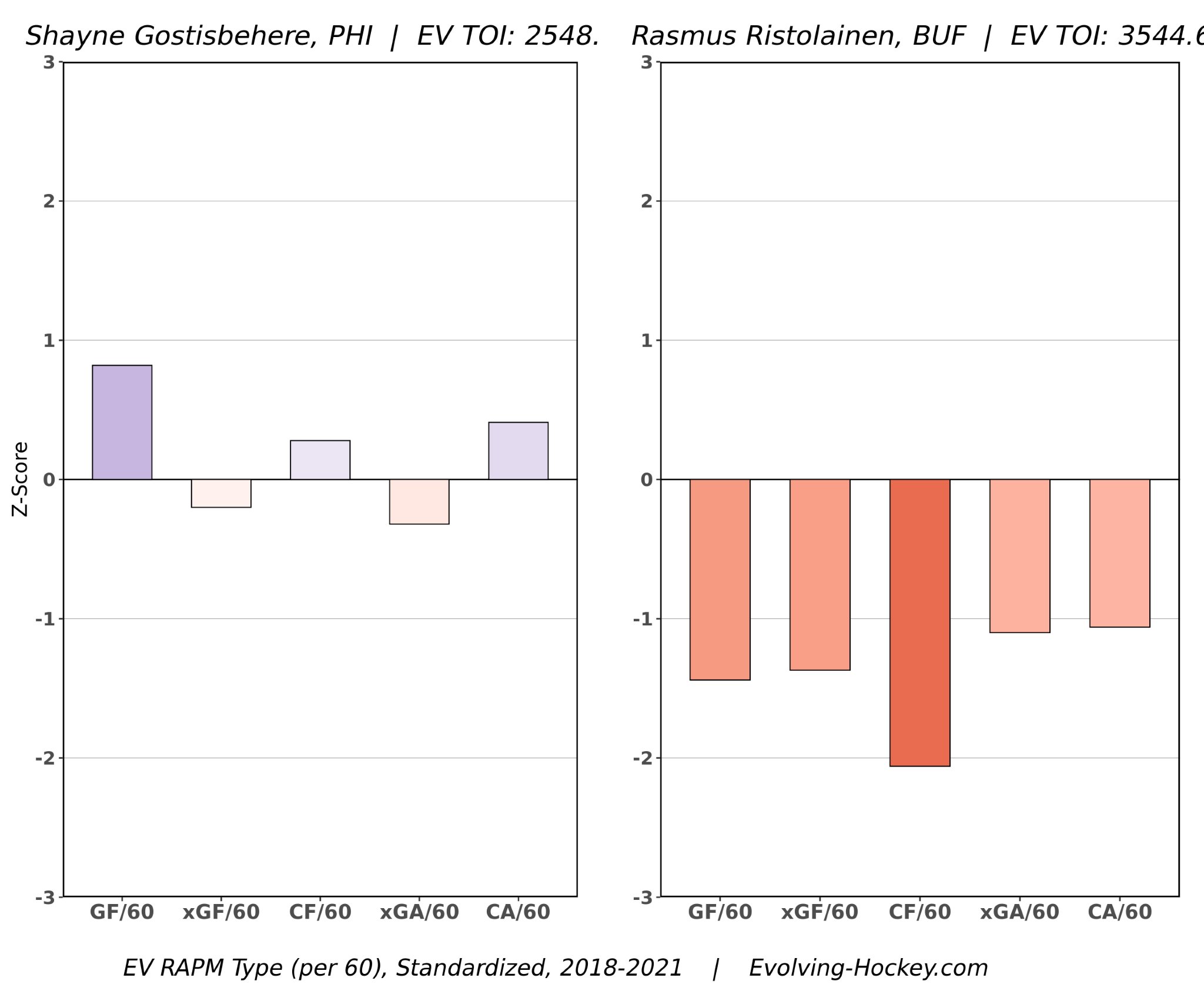 There's really just nothing out there to show that Gostisbehere has been among the worst defensive defencemen in the league in the last five years or so. And his offence has almost always been good enough to at least offset any defensive deficiencies.