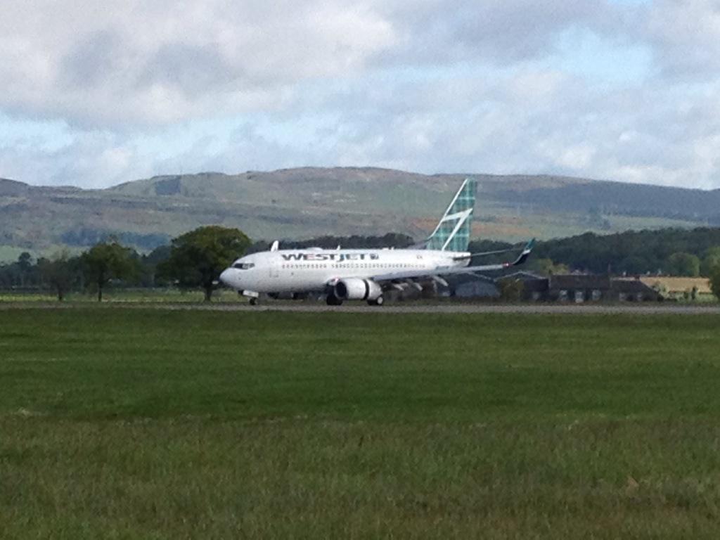 Buddy MacDonald performing outside the gate for the inaugural Glasgow flight (not to be called the new Glasgow flight, as New Glasgow doesn't have an airport, and is only about 1h45 drive away)