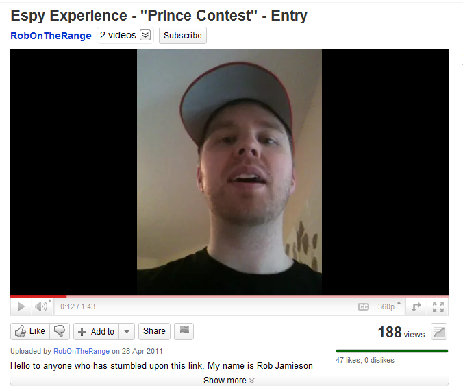 "Liked" the video. You seem like a genuine guy, so good luck to you sir!
