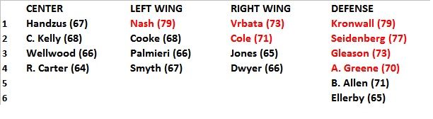 JVR (73) - O. Jokinen (68) - Nate Thompson (65)