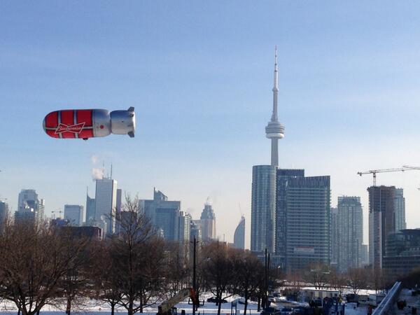 Budweiser has a giant light blimp flying around Toronto... supposedly going to light up whenever Canada scores. (insert Rob Ford joke)