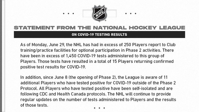 If one player steps on the ice without properly isolating, and the virus starts to get passed around in the NHL's bubble, you're looking at a huge setback.