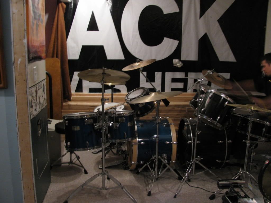 So for $500 you'd get the drums, 3 cymbal stands (one also holds the two floor toms), a 21" Avedis rock ride, 14" solar hi-hats, 18" solar crash/ride. You can have the 16" Sabian crash as well, but it has a small crack in it, although it sounds fine for practicing. ...and the drum throne.