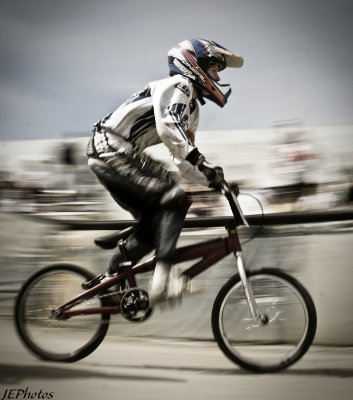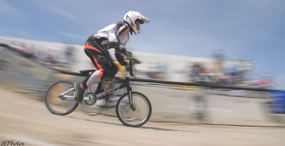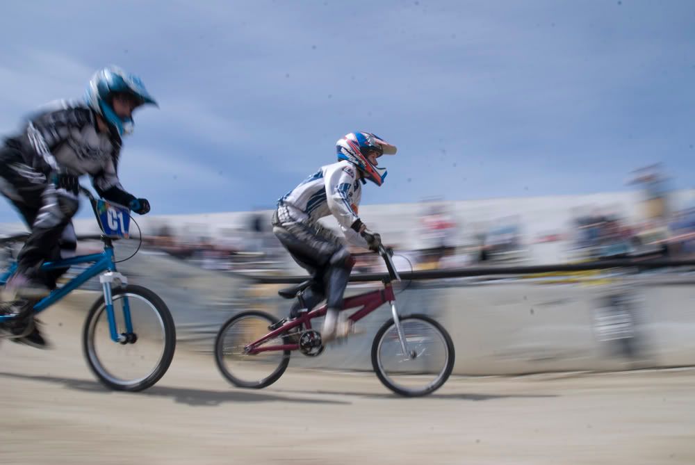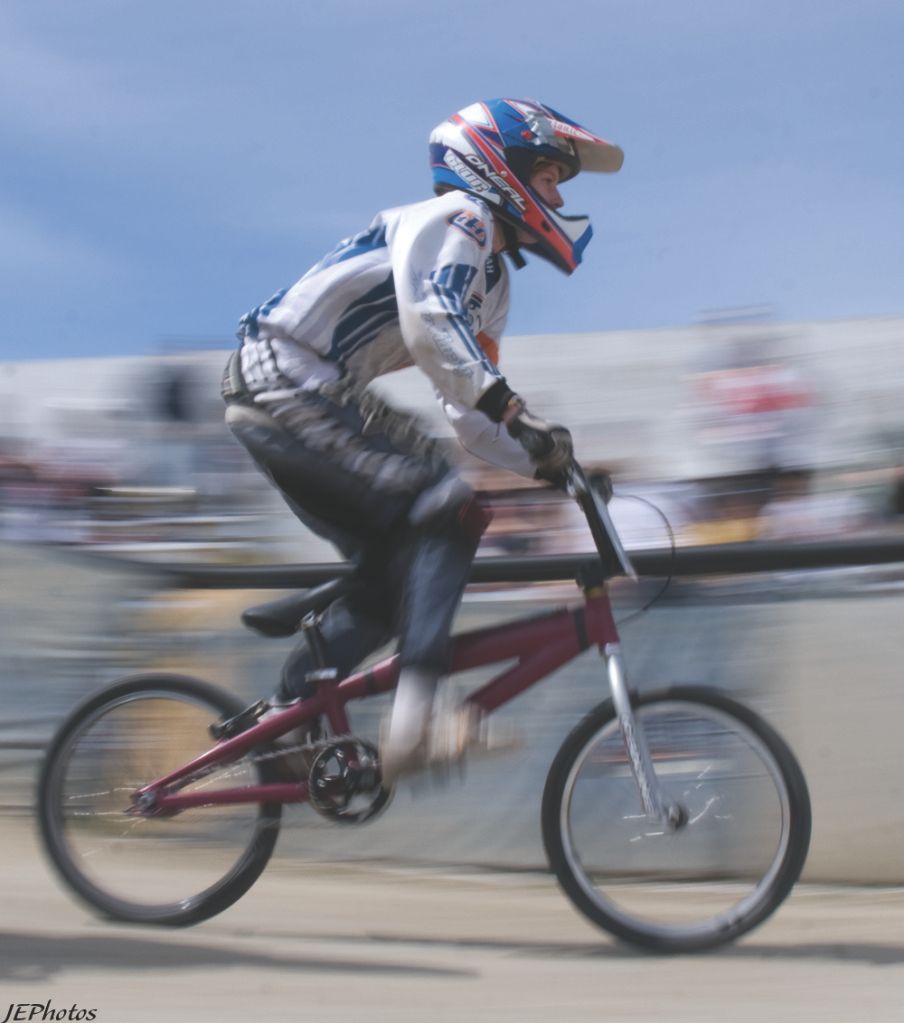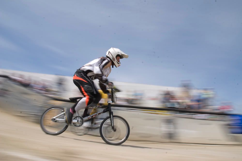 Alright. How about some sports? Shot at a BMX track a few weeks ago. First picture is the raw file, absolutely 0 editing done to it. Notice all my damn dust spots. Because of the slow shutter speed, they were amplified 10 fold. When I shot with a fast shutter, they all but disappeared. Anyways.