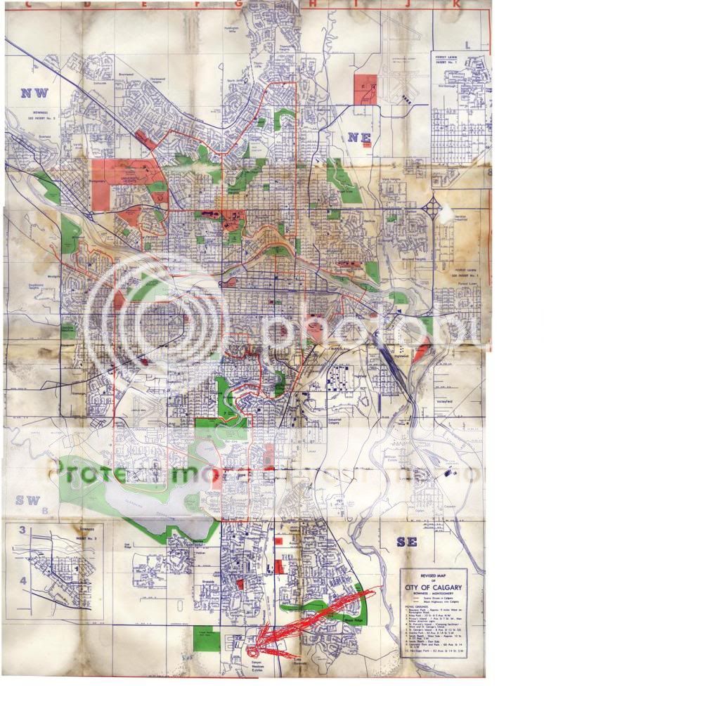 Wow, what a cool time for that map to be made. I live in Canyon Meadows, which is literally half there (on the south edge of the city, just north of fish creek) at that time, and my house JUST made the cut off. It must have been one of the newest houses built at that time.
