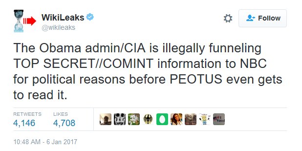 Pretty good chance the intelligence briefing today did not go well for Trump. Also worth pondering if Wikileaks actually wrote this tweet.