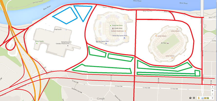 The Stampede takes all the parking revenue for the area, as well as I believe the Flames have to pay rent for the land where the Dome is (I could be wrong about that). Either way, building on the Stampede grounds is not optimal for the Flames.