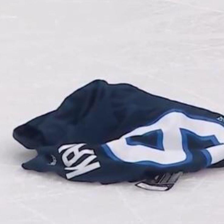 Shirt still has tags... looks like someone bought it just to throw it on the ice