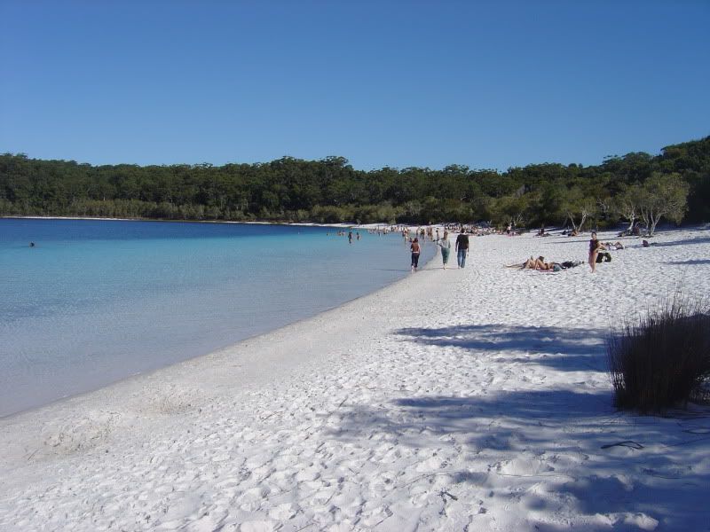So far... Lake McKenzie on Fraser Island in Australia - pristine freshwater beach.
