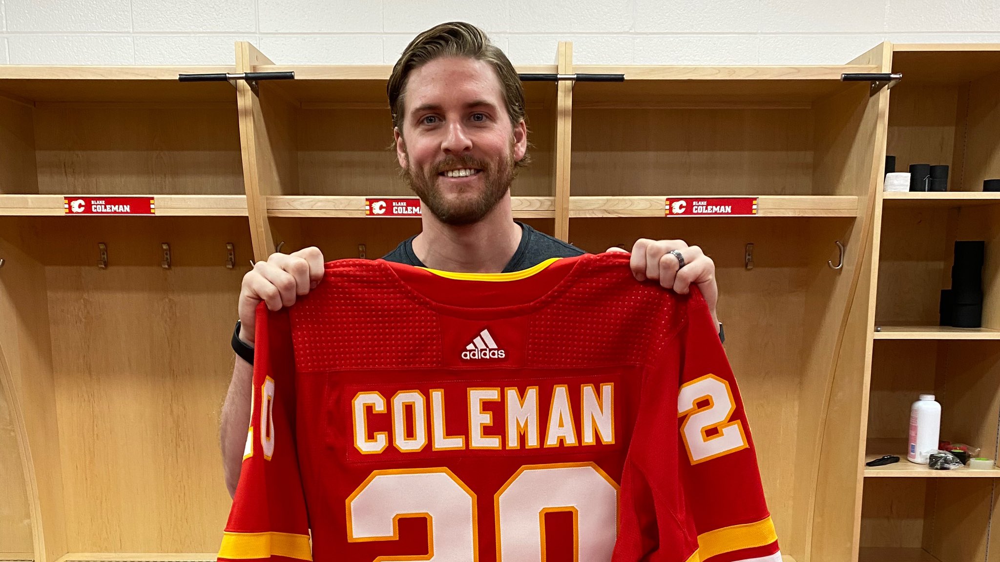 "The Flaming C is so iconic," the forward said from his new stall inside the Scotiabank Saddledome. "This is pretty cool to be wearing it for the first time."
