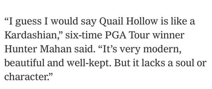 I like Quail as a course, but playing the PGA in May just feels wrong. This is a glorified tour event, not a major.