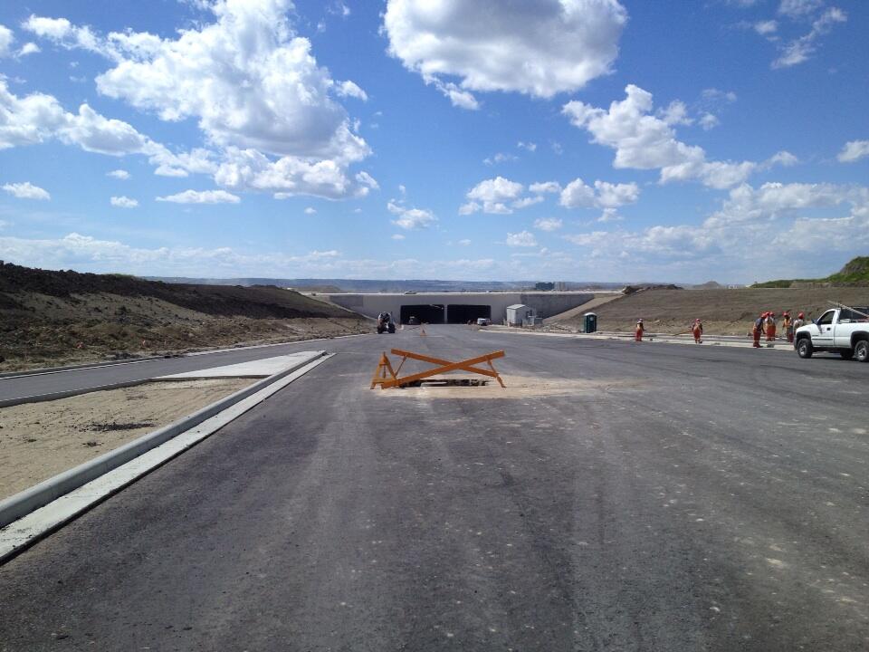 It's also why asphalt is done in several "lifts" - coats. There's a final lift to go on yet, which will be done when everything else is done. For many projects, the final lift isn't even done until several years after the project opens, just in case there's some settling somewhere.