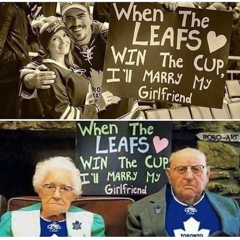 That first guy is making his gf the butt end of the joke. And he's a Leafs fan.