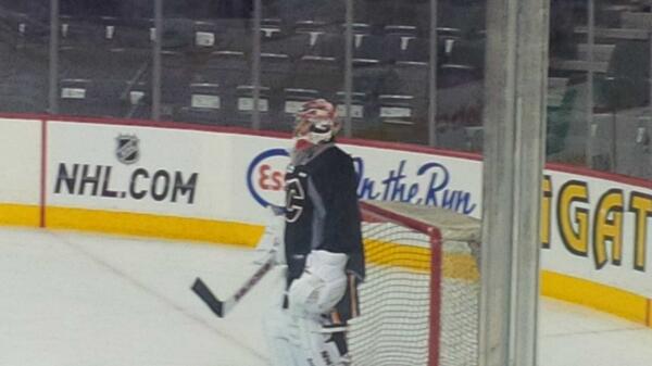 The switch has been made... MacDonald is sporting his new mask. more proof that Taylor is the odd man out #flames pic.twitter.com/CbpLf8Mbfn