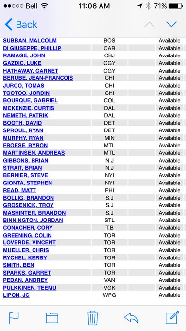 Here is the full list for Oct 2 per Rick Ralph of TSN