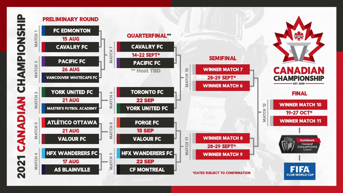 Next round is confirmed. Sept 22 at 8 pm vs Pacific. That means the Sept 21 game vs Valour has been moved to Oct 30, which is a Saturday afternoon, so there's that. And the Oct 20 game vs Pacific has been moved to Oct 21. And the Sep 14 game in Edmonton has been moved to Sept 29.