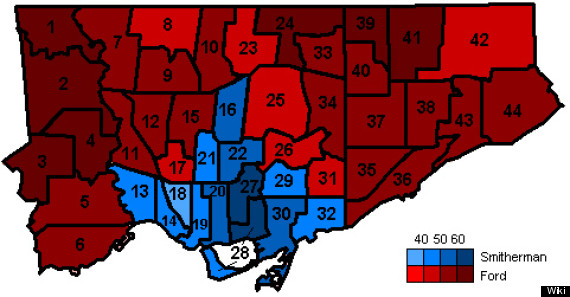 There were many mayoral candidates in 2010, but Ford was the only conservative. His "stop the gravy train at City Hall" talking points resonated well in the business community as well as in affluent suburbs such as Vaughan.