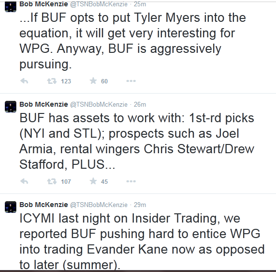 hearing the deal being framed between #nhljets and #sabres is multi-player on both ends. So E Kane and more from Winnipeg