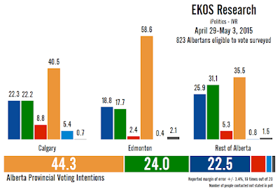 The Edmonton and Calgary polls I believe could happen, but I'd be surprised if the NDP takes the projected seats these polls say in the rest of Alberta .