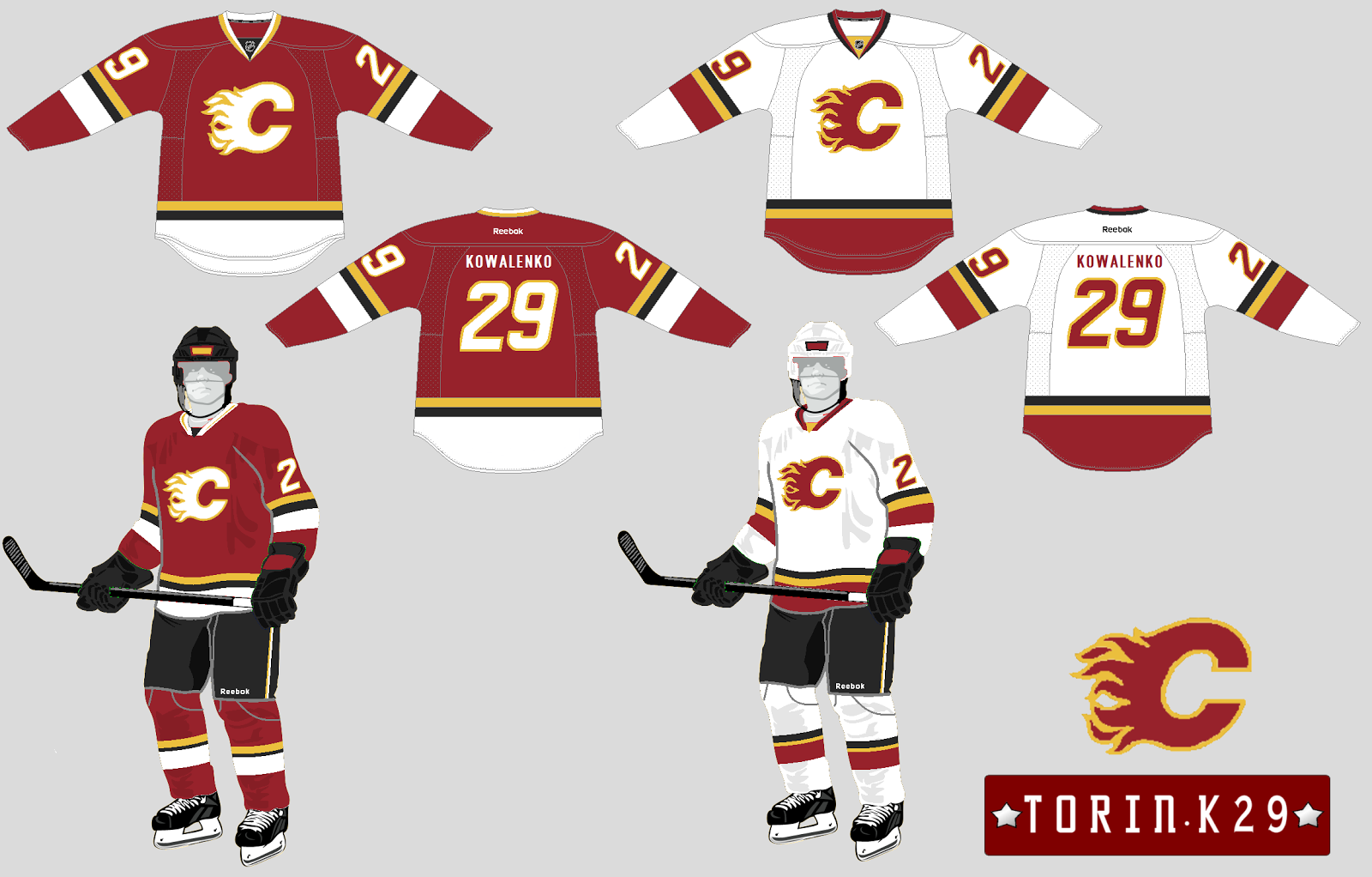 I do like these but the shade of red should be what the Flames use and the C does need a black trim in it. I think it would be better with a red kit as well (helmet, pants and gloves)