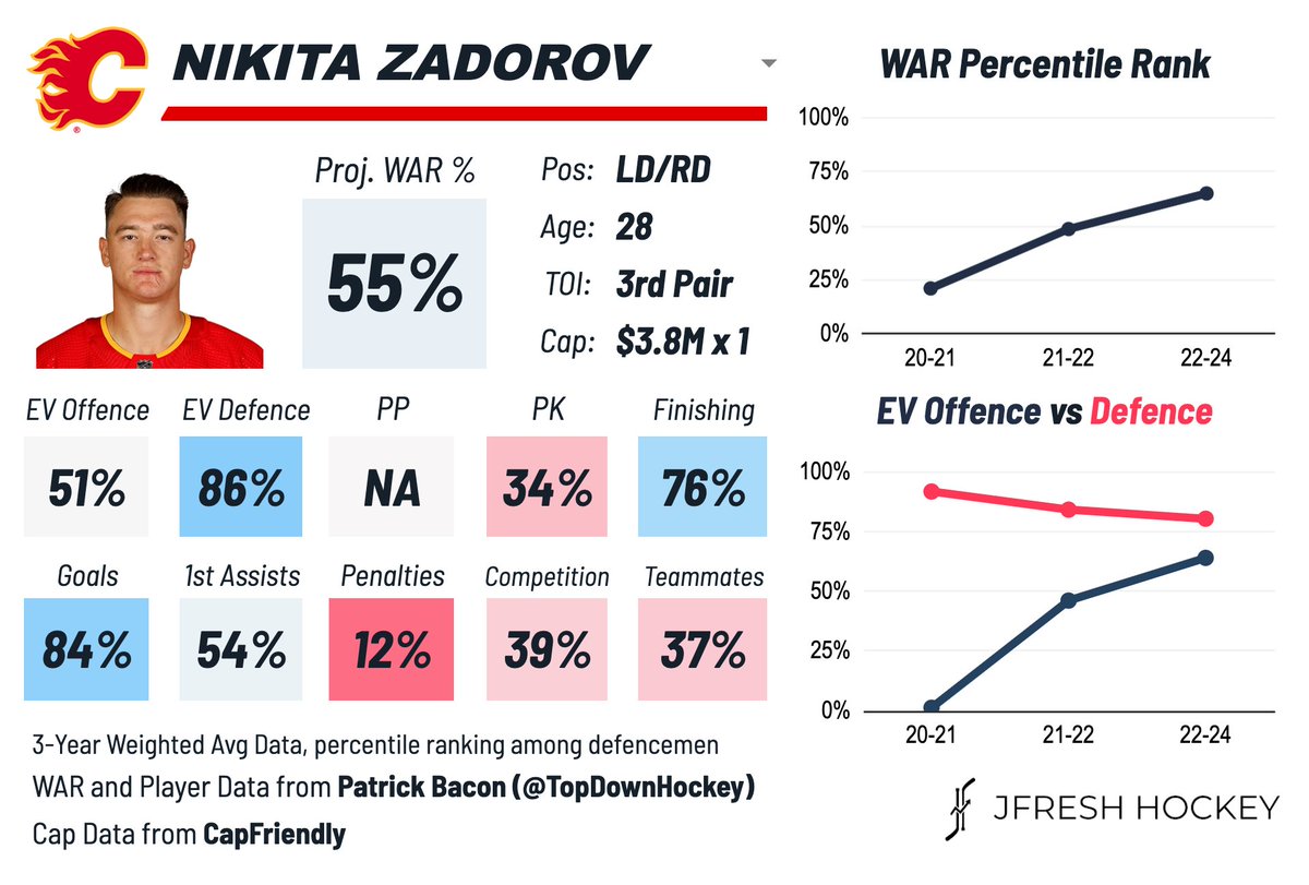 If Lindholm would have signed this deal with the Flames last summer I would have liked it. He cost himself some cash but ultimately is playing in the East for a franchise that has been highly successful for more than a decade. He got more money than Vancouver offered and I assume Zadorov got more term in Boston than Bancouver offered. I would not want to give Z that type of deal but it is not an albatross because he is a highly effective third pairing guy who can play up in the lineup when needed and steps up his game in the playoffs.