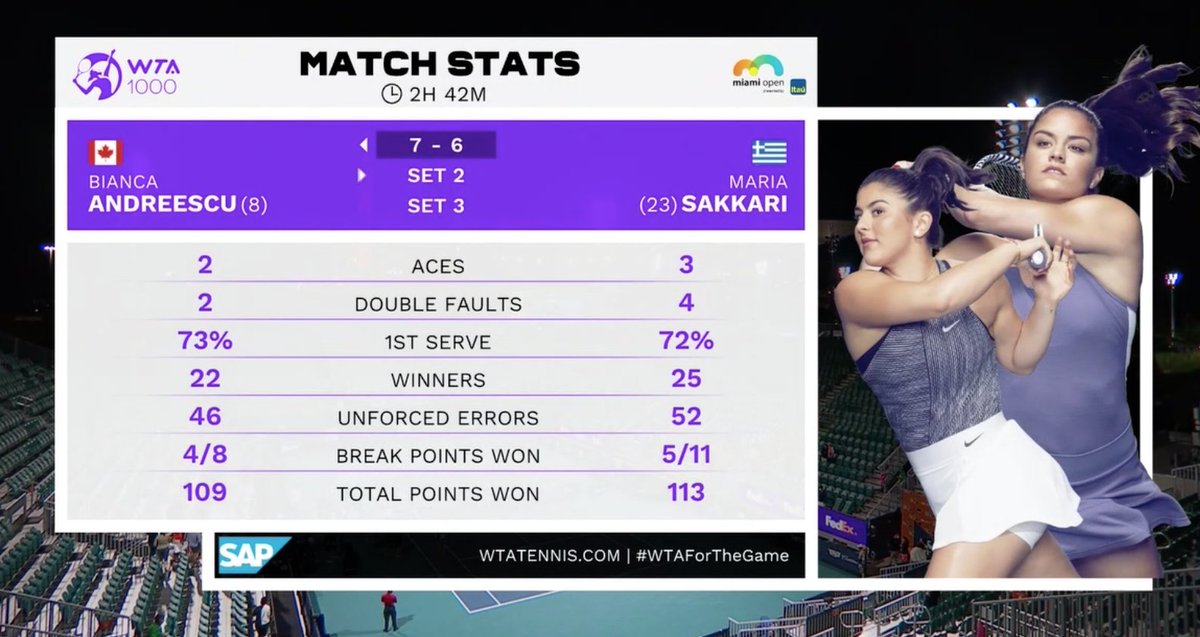 A worrying stat though. Bianca has lost 7 out of her last 10 2nd sets after winning the 1st.