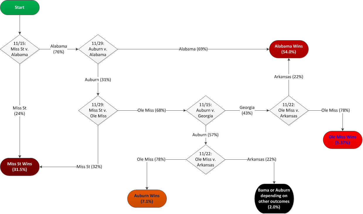 Interesting to see all the different permutations still in the SEC West, with 4 teams still having a shot.