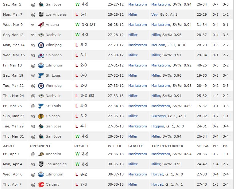 take a look at ESPN #Canucks schedule & Top Performer column and tell me what's missing since March 5