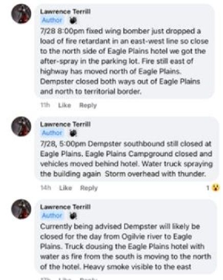 Not good news if you are planning on travelling the Dempster. A fire by Eagle Plains has closed the highway both ways and north to the territorial border.