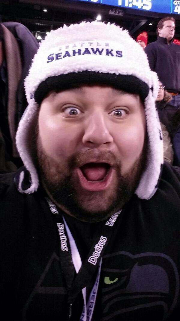 Great selfie of Tim Connors, who got Seahawks Super Bowl champs tattooed on him in August