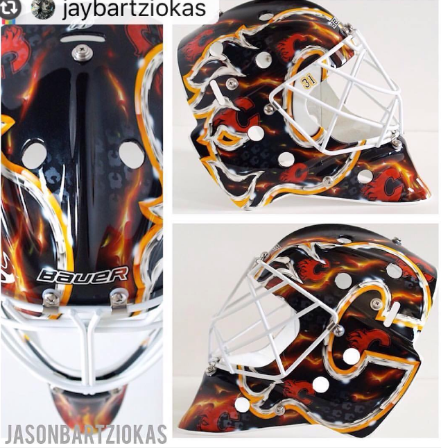 It's basically a Flames version of the mask he wore with Buffalo last season.