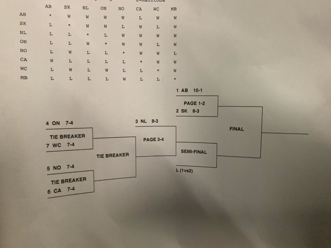 Alberta, Sask or Newfoundland will have to win 2 games in a row to win this thing.
