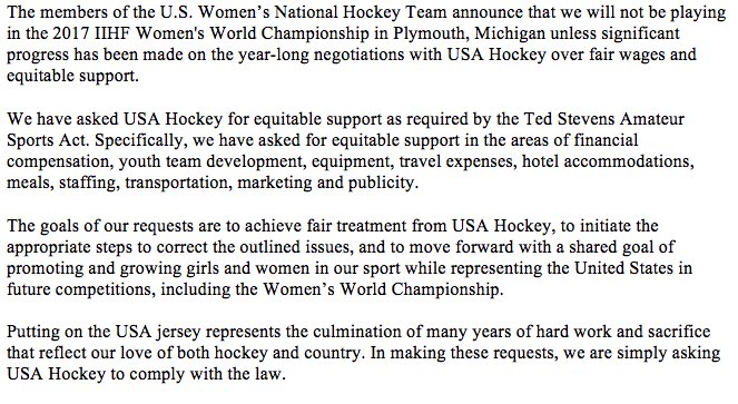 For context: if you make more than ~$34,500 per year, you make more than USA Hockey allegedly pays all ~20-23 USWNT Olympians combined.