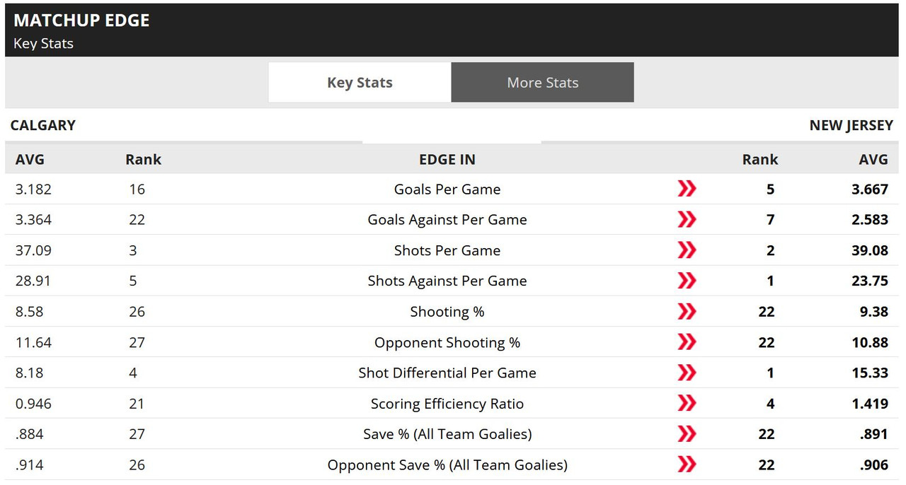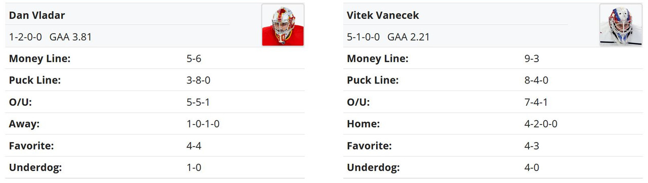 Depleted defense on 2nd night of a back to back against a quicker team and the Flames are starting their backup (I assume).